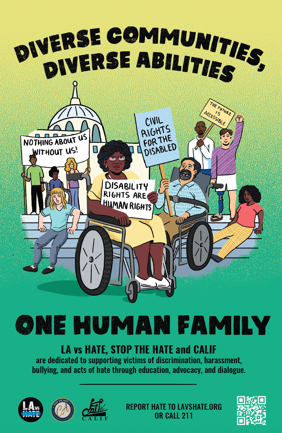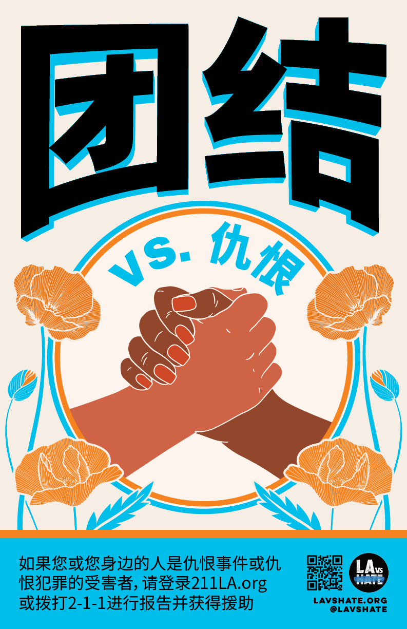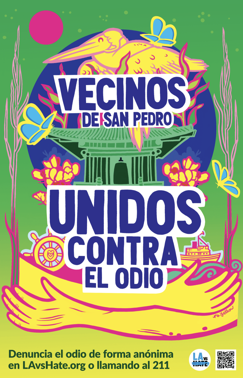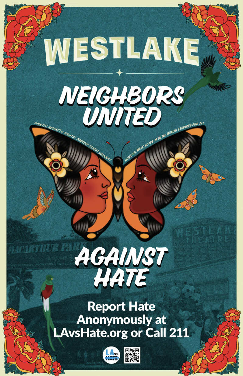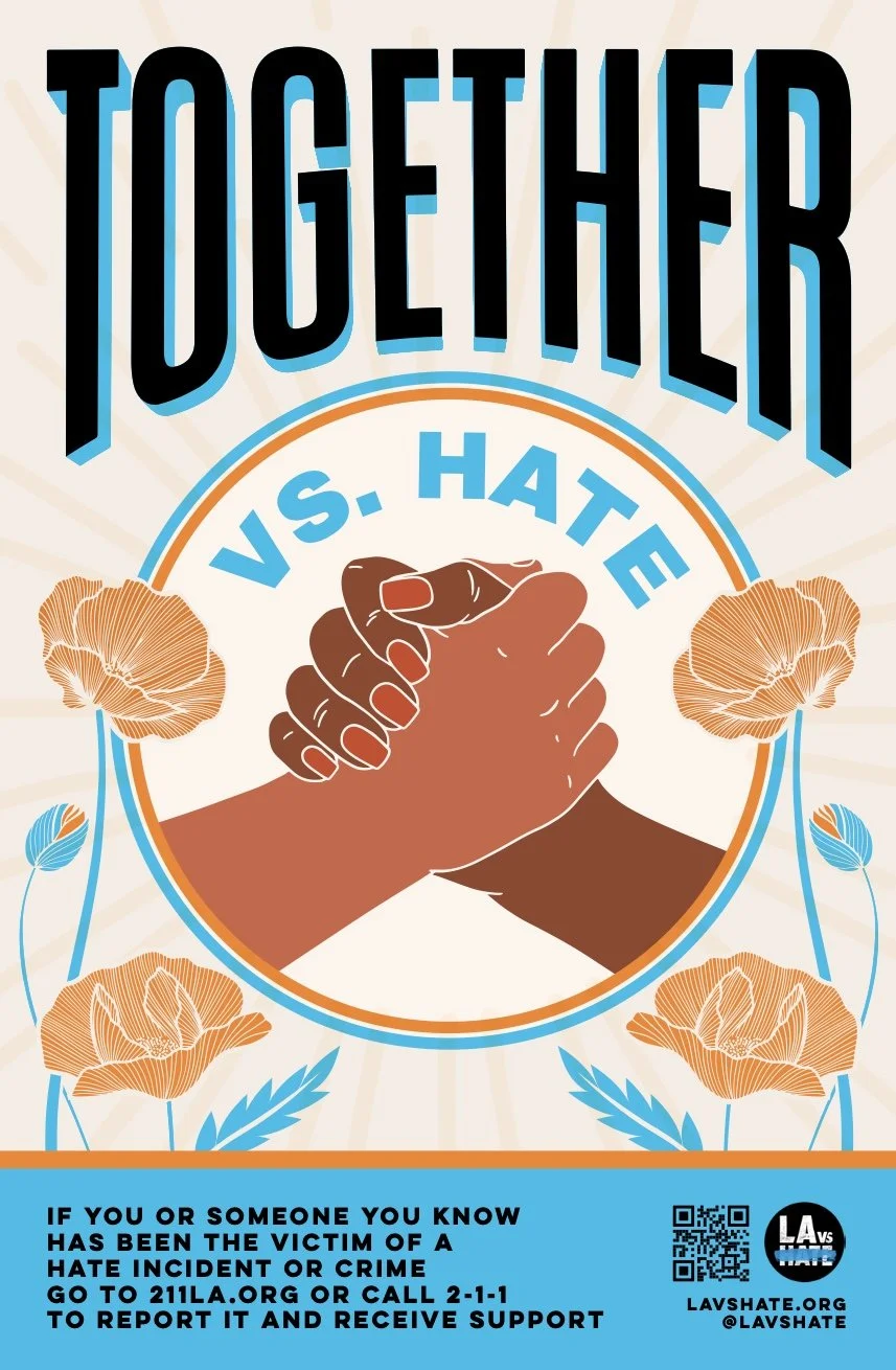 We believe in the power of physical ephemera and artwork to shape the narratives we see in our communities. LA vs Hate works with local artists to creative diverse pieces that you can use to promote a sense of safety and belonging in your neighborhood. Use the below materials online or in-person.