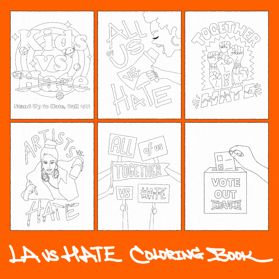 Our coloring book and pages can be used as a resource for educators and caretakers to engage youth in an art-forward activity that teaches them why we must stand against hate. Click here to download a PDF of the coloring book or click on each asset below to download.